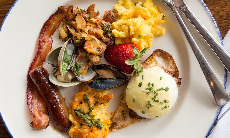 Experience Tom's Watch Bar's innovative breakfast menu available daily until 11:00 AM. Catch the morning's games with creative takes on classic dishes with a global twist, perfect for those looking to start their day with something out of the ordinary.
